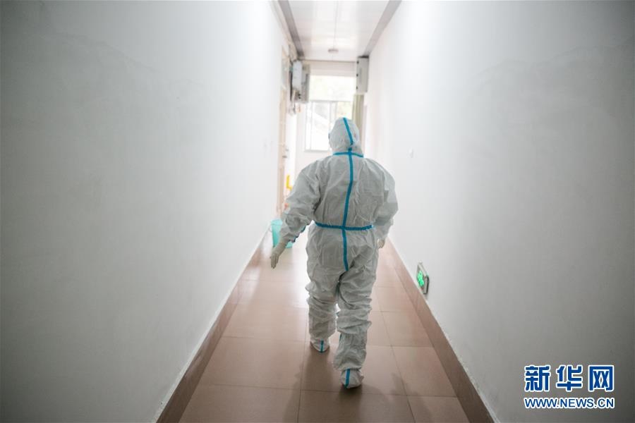 1月27日,在貴州省畢節(jié)市第三人民醫(yī)院感染科,黃迪走在前往隔離病房的過道里