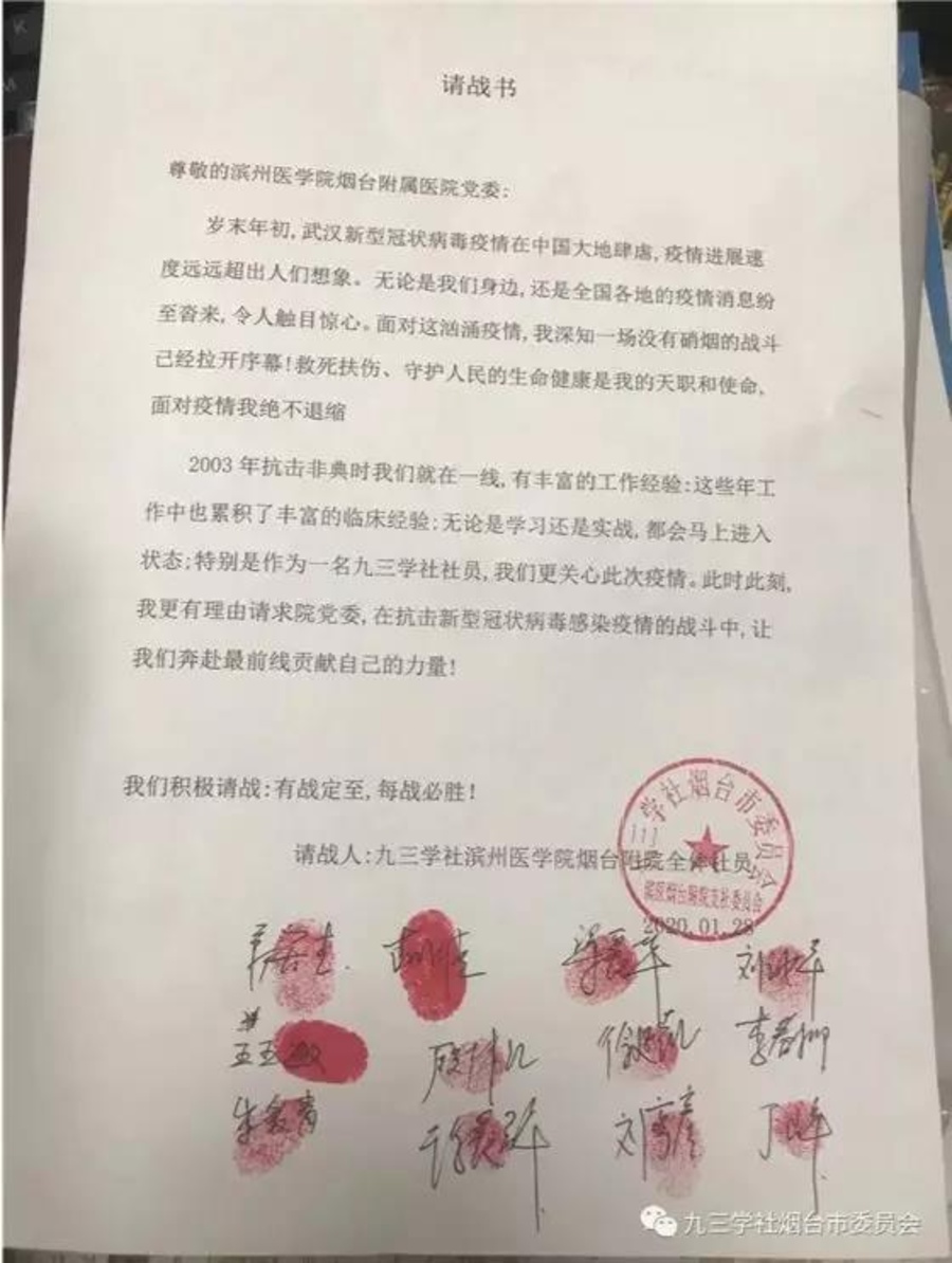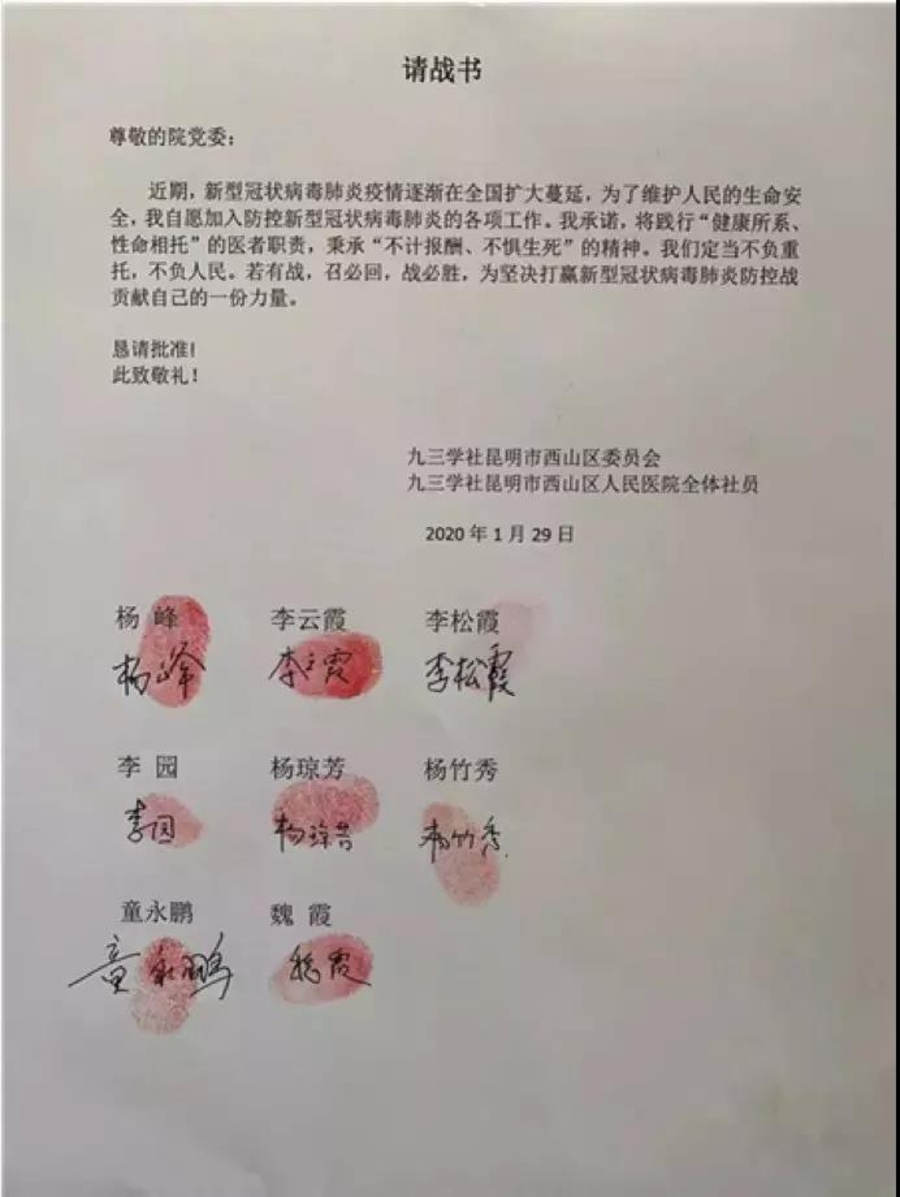 抗擊新型肺炎疫情,是一場沒有硝煙的戰(zhàn)斗。沖鋒號吹響之時(shí),許多九三學(xué)社醫(yī)務(wù)工作者寫下請戰(zhàn)書,主動(dòng)要求參加一線救治。一封封懇切堅(jiān)定的請戰(zhàn)書,是誓言,是承諾,是一顆顆火熱的心。