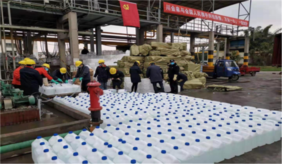 2月3日,在了解到甘孜州已發(fā)生3例新型冠狀病毒肺炎感染者,急需消毒物資急況后,九三學(xué)社眉山市委主委賴崇華與市委委員、四川金象賽瑞公司總裁唐印一致商定,在前期捐贈基礎(chǔ)上,由川金象與眉山九三共同向甘孜州政府捐贈當(dāng)?shù)丶毙璧目箵粢咔槲镔Y,包括20噸雙氧水、400個口罩、10個自動噴霧器等。