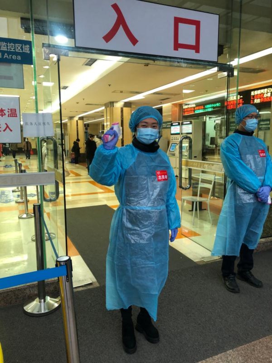 她主要的工作是把好第一道關,為病人、家屬以及工作人員測量體溫。如果發(fā)現(xiàn)有體溫異常的,馬上進行復檢,把他們送到發(fā)熱門診。