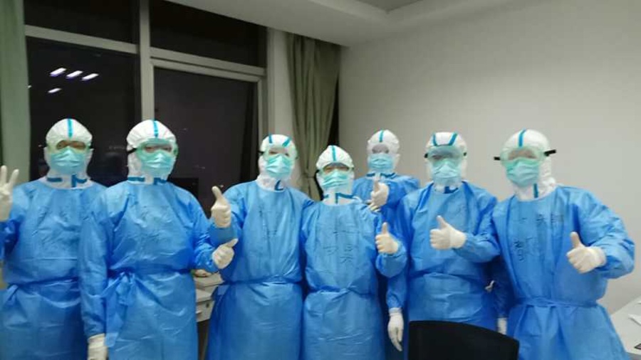 進(jìn)入紅區(qū)的時(shí)候,我們的服裝都是整齊劃一的,都是標(biāo)配:有防護(hù)服、隔離衣、N95口罩、外科口罩、手套等。這讓我感到雖然我們?cè)?jīng)是不同專業(yè)的醫(yī)學(xué)生、是不同醫(yī)院的醫(yī)生,但今天我們都是傳染病醫(yī)生、都是抗擊新冠病毒的醫(yī)生。有人認(rèn)為醫(yī)生只是一種職業(yè),也許曾經(jīng)是。但當(dāng)我們每一個(gè)醫(yī)生都穿起防護(hù)服的時(shí)候,我們已經(jīng)不再是原來(lái)的專科醫(yī)師,而是成為一名對(duì)抗新冠病毒的“戰(zhàn)士”。作為戰(zhàn)士去參加戰(zhàn)“疫”就顯得再正常不過(guò)了。因此當(dāng)醫(yī)生都可能成為傳染病醫(yī)生。這是一個(gè)醫(yī)生義不容辭的職責(zé)。