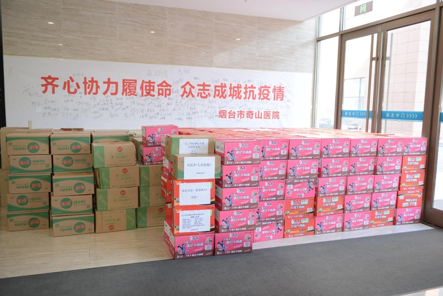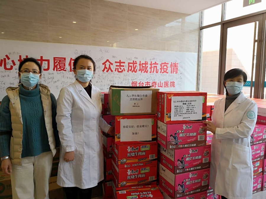 了解到奇山醫(yī)院一線醫(yī)護(hù)人員經(jīng)常忙于救治工作而錯(cuò)過就餐時(shí)間,方便食品又比較缺乏,九三學(xué)社煙臺(tái)市委文化法律經(jīng)濟(jì)支社立即向社員發(fā)出共同捐贈(zèng)方便食品的號(hào)召。支社社員積極捐款,原九三學(xué)社煙臺(tái)市委副主委于黨辰聽說后也進(jìn)行了捐贈(zèng),支社主委林瓊創(chuàng)辦的山東智宇知識(shí)產(chǎn)權(quán)運(yùn)營(yíng)中心、山東智宇律師事務(wù)所為本次捐贈(zèng)提供了助力。