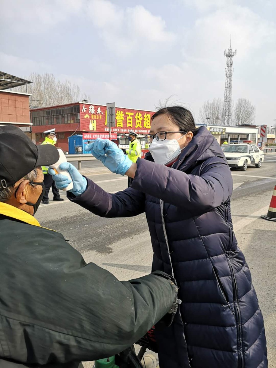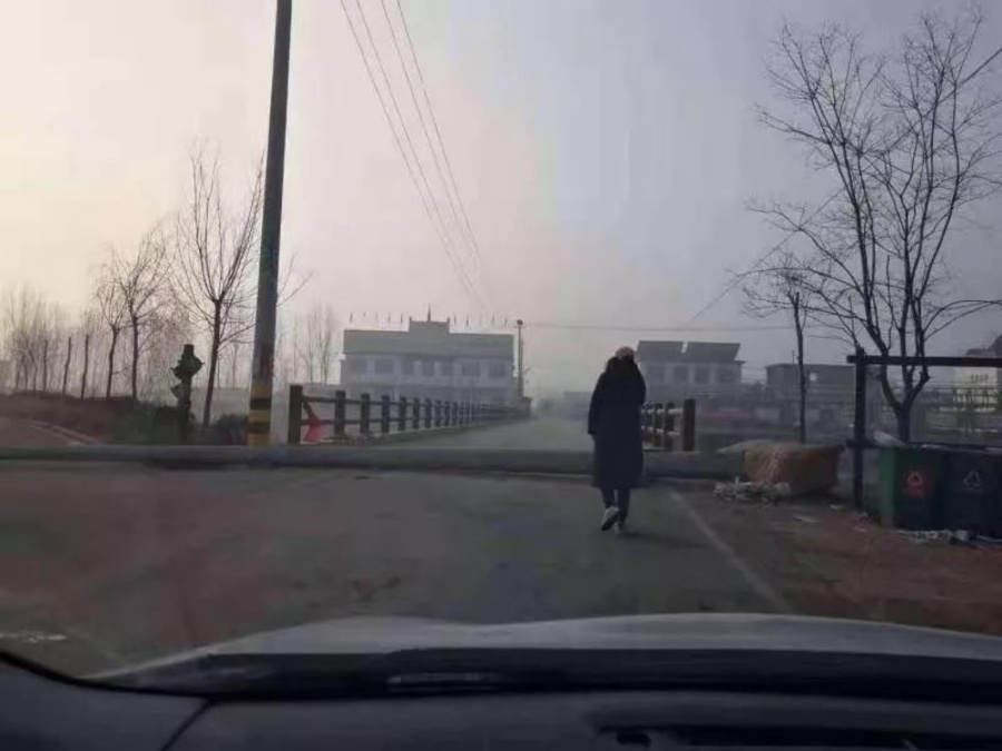 照片中的背影人物叫王君玉,是九三學(xué)社棗莊市山亭區(qū)支社社員,山亭區(qū)桑村鎮(zhèn)社會(huì)保障中心主任,這是春節(jié)后,王君玉丈夫清晨送她上班時(shí)拍攝的一張照片。為了做好人員防控,王君玉負(fù)責(zé)的幫包點(diǎn)瓜園村主干道已經(jīng)封閉,她每天只能在320省道就近下車,再步行3里多路到達(dá)村口,開始蹲守防控工作。