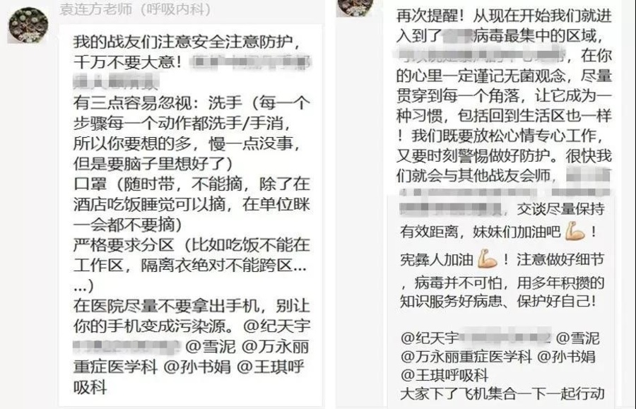 為防止交叉感染,病區(qū)內(nèi)無法用手機(jī)拍照。那就讓我們看一段袁連方大夫書寫在武漢一線的日記——“在家里他們還是父母的小寶兒,在單位他們還是領(lǐng)導(dǎo)的得力臂膀,在這里他們剪掉長發(fā)、穿起戰(zhàn)袍變身成了真正的勇士,不畏艱難、勇往直前!每一次進(jìn)入紅區(qū)都是在和時(shí)間賽跑、再向疾病發(fā)起沖鋒,他們來自不同醫(yī)院、不同崗位,在這里迅速凝聚成一支強(qiáng)大的隊(duì)伍,團(tuán)結(jié)一致只為一個(gè)目標(biāo),戰(zhàn)勝疫情!臨上戰(zhàn)場(chǎng)之前,總會(huì)互相細(xì)致的檢查,確認(rèn)無誤后還會(huì)繼續(xù)鼓勵(lì)一下,加油!我們一定不負(fù)使命,直到勝利!