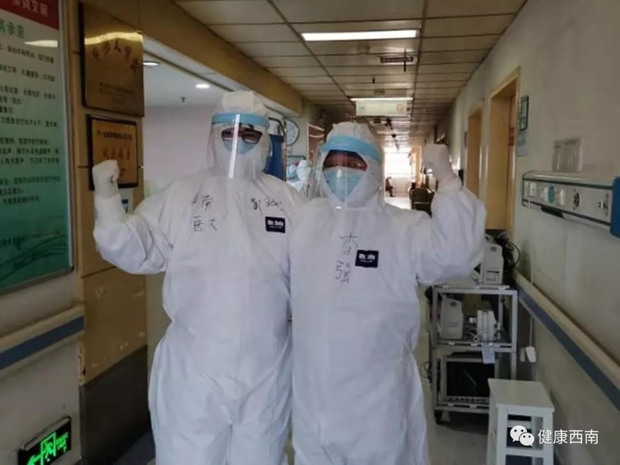 李強(qiáng)是西南醫(yī)科大學(xué)第一批援助醫(yī)療隊(duì)35名隊(duì)員中年齡最大的,剛開始工作時(shí)還遇到一些困難,比如醫(yī)囑系統(tǒng)與原所在醫(yī)院的不一樣,作為“60后”醫(yī)生的他還需適應(yīng);而且李強(qiáng)戴有近視眼鏡,加上護(hù)目鏡,又穿著防護(hù)服,有時(shí)熱氣起霧半個(gè)小時(shí)都無法消散,好在隊(duì)員們都團(tuán)結(jié)協(xié)作,相互幫助,很快讓李強(qiáng)適應(yīng)了工作環(huán)境。