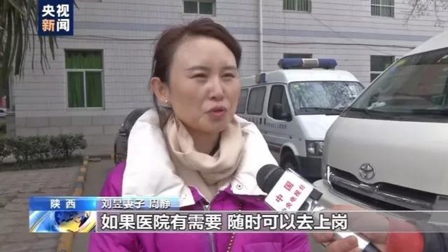 劉昱妻子 周靜:我報(bào)名參加醫(yī)院的(發(fā)熱門診)我自己也是一名黨員,這種情況我們每一個(gè)人都是報(bào)了名的,過節(jié)期間也是隨時(shí)在家待命,如果醫(yī)院有需要,隨時(shí)可以去上崗。