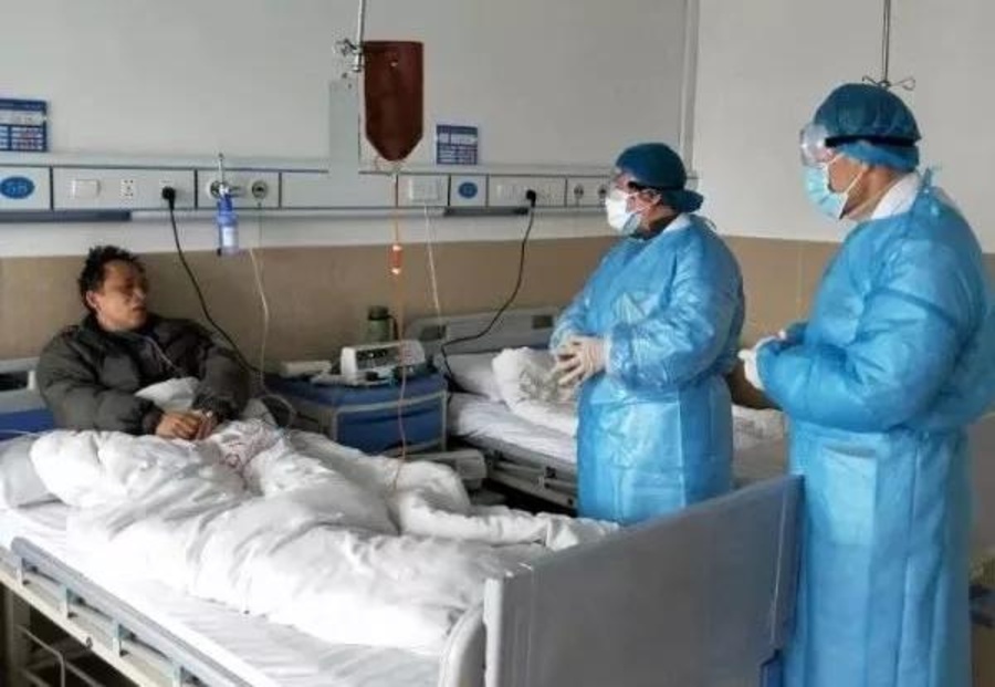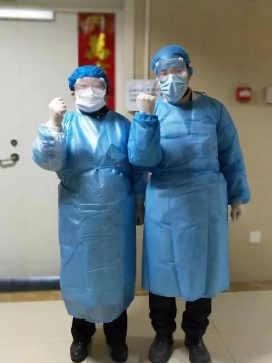 在這里,葉斌會師九三學社衛(wèi)生支社另一位親密的戰(zhàn)友朱捷燕。朱捷燕也是衛(wèi)生支社委員,呼吸科副主任之一。年紀50歲左右的她性格開朗,原本負責呼吸內(nèi)科非感染組,但是在特殊的疫情面前,同樣拋棄了門派之別,毅然分擔起感染性肺炎的診治工作。就這樣,葉斌和朱捷燕兩位同在九三學社衛(wèi)生支社的戰(zhàn)友居然被這場沒有硝煙的戰(zhàn)役再次聯(lián)系在一起,共同為抵制新冠這個惡魔盡一己之力。呼吸科二樓就是發(fā)熱性肺炎需要排查新冠的隔離區(qū),就在幾天前,這里成功確診了幾例新冠肺炎患者轉(zhuǎn)至感染科治療。葉斌和朱捷燕每三天就要穿上藍色的隔離衣,戴上緊繃的護目鏡領著年輕醫(yī)生進入到這里深入查房。一般在隔離區(qū)住院的待診發(fā)熱肺炎患者心情非常復雜,家屬也很焦急。他們都會在診查結束后為他們詳細的解釋,給患者鼓勵,安慰,讓他們樹立戰(zhàn)勝疾病的信心。