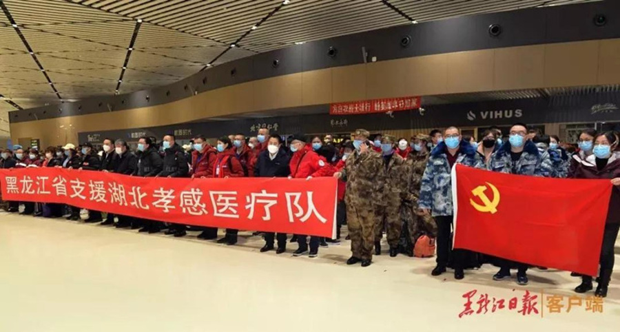 2月12日晚,黑龍江省支援湖北孝感醫(yī)療隊(duì)出征,援馳孝感疫情阻擊戰(zhàn)前線。省委書記、省人大常委會(huì)主任、省應(yīng)對(duì)新型冠狀病毒感染肺炎疫情工作領(lǐng)導(dǎo)小組組長張慶偉來到機(jī)場(chǎng)為白衣戰(zhàn)士們壯行。