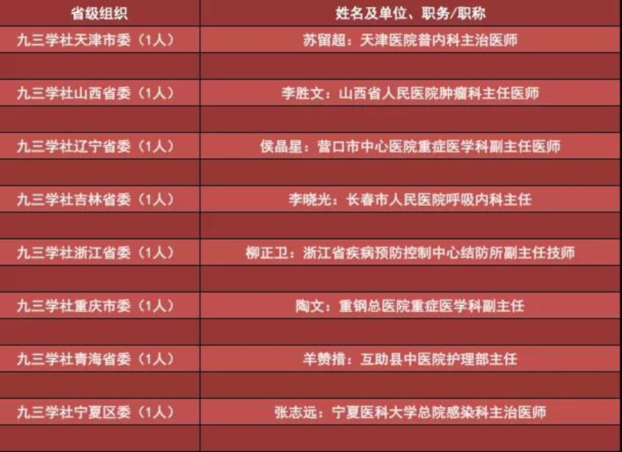 九三學(xué)社社員援鄂一線(xiàn)光榮榜(新增)