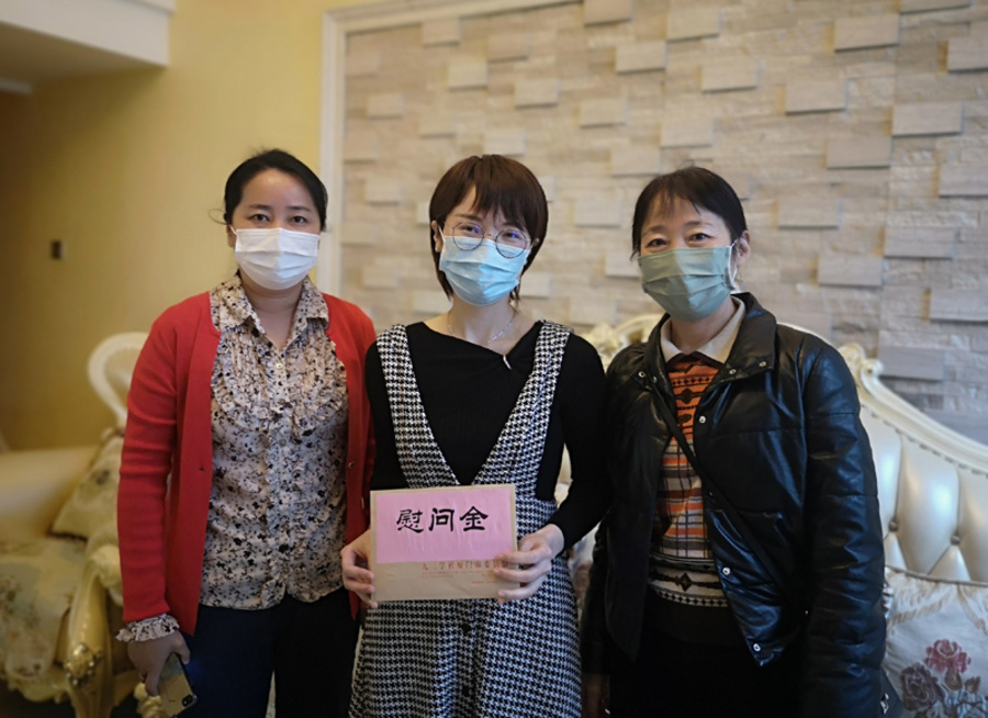 自蔣海彬醫(yī)生馳援武漢以來,林少芬、梁黎虹就通過微信和電話與蔣海彬家屬建立了聯(lián)系,疫情稍有緩解后,就親自登門慰問。蔣海蔣家屬十分感謝社省委、社市委的悉心關(guān)懷和照顧,并表示同樣作為一位醫(yī)務(wù)工作者,她一定會(huì)克服困難,照顧好家庭,同心同力,成為援鄂醫(yī)務(wù)人員的堅(jiān)強(qiáng)后盾。
