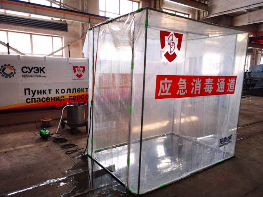 自 2月10日起,黑龍江省龍煤集團響應(yīng)國家的緊急要求,采煤工作面陸續(xù)開工。雞西市政協(xié)原副主席、九三學社雞西市委原主委,現(xiàn)任黑龍江龍煤卓異救援裝備有限公司總經(jīng)理孫利同志,根據(jù)目前防控新型冠狀疫情需要,敏銳的考慮到礦工入井前的消毒防疫。為了確保工人的身體健康和精神健康,緊急研制簡易應(yīng)急消毒通道設(shè)備,對入井礦工進行入井前全身消毒防護。