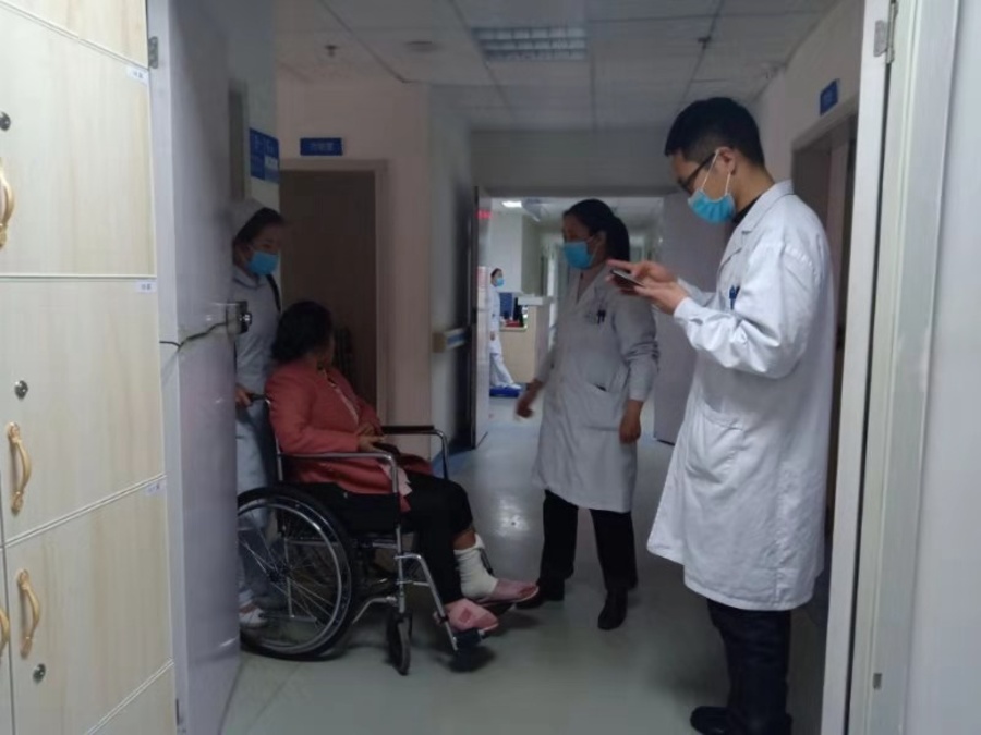 水鋼小組社員、首鋼水鋼醫(yī)院燒傷整形科主任 葛紅(右二)在工作一線