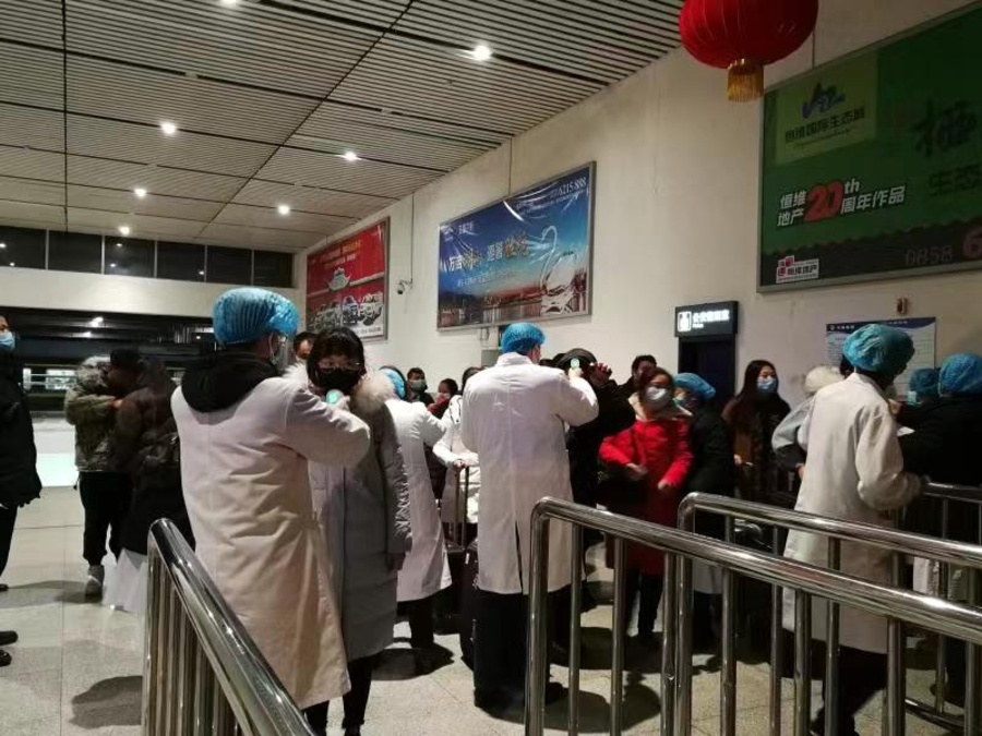 社員楊璟在火車(chē)站檢測(cè)旅客體溫
