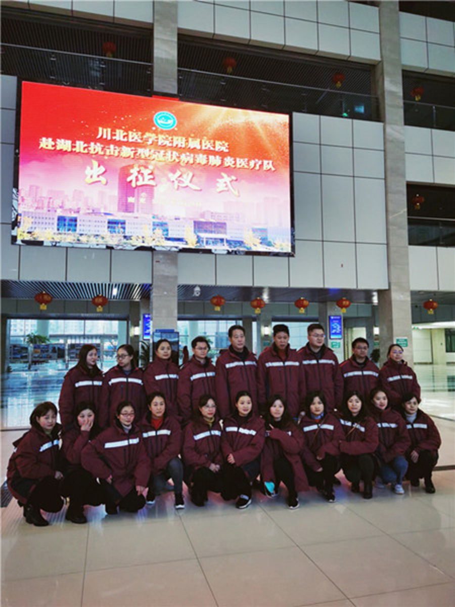 南充社員周仲輝醫(yī)生(后排右四)率“川北醫(yī)學(xué)院附屬醫(yī)院赴湖北抗擊新型冠狀病毒肺炎醫(yī)療隊”準(zhǔn)備奔赴一線
