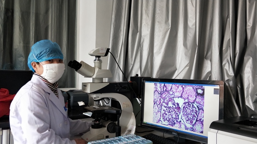 熒光顯微鏡前,她在仔細(xì)觀察人體組織病理學(xué)改變,進(jìn)而作出病理診斷,“堅(jiān)守崗位,把N95留給接觸發(fā)熱病人的醫(yī)生們,一線醫(yī)生更辛苦。”,紅河州第三人民醫(yī)院張銀醫(yī)生說(shuō)。