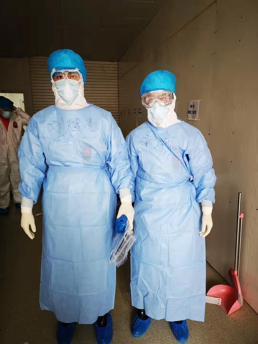 醫(yī)療隊(duì)負(fù)責(zé)的是孝感市的東南醫(yī)院,這是一個新的院區(qū),是孝感的“小湯山”。之前這里是一家民營醫(yī)院,各方面條件不是很好,防護(hù)措施也不完備。但是疫情緊急,在醫(yī)院防護(hù)措施不完備的情況下,患者已經(jīng)住進(jìn)來了。怎么辦呢?病人的病情是不等人的。形勢所迫,劉煜亮和醫(yī)療隊(duì)的章述軍副教授兩人率先去查了房,第一時間了解了病人的情況,為下一步救治工作做出安排。為什么是他們倆?劉煜亮答到:“我是隊(duì)長,他是中共黨員,我想關(guān)鍵時刻挺身而出是我們義不容辭的責(zé)任。”