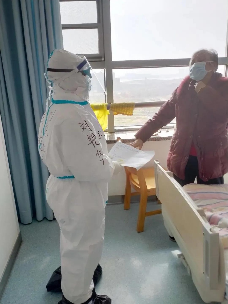 我們組的24床病情較重,每次查房我都會(huì)重點(diǎn)關(guān)注他。看著他一天天好轉(zhuǎn),由面罩吸氧變?yōu)楸菍?dǎo)管吸氧,氧流量也由高轉(zhuǎn)低,血氧飽和度也能維持98%以上,我的心里別提多高興了!查房時(shí),我都會(huì)跟他多聊一會(huì),甚至聊聊家常,讓他在沒(méi)有親人陪伴的時(shí)候不那么孤獨(dú)、無(wú)助。雖然他說(shuō)話仍有氣短,但是開(kāi)心卻寫(xiě)在臉上,臨走的時(shí)候,他突然叫住我,對(duì)我說(shuō)“醫(yī)生,謝謝您!”