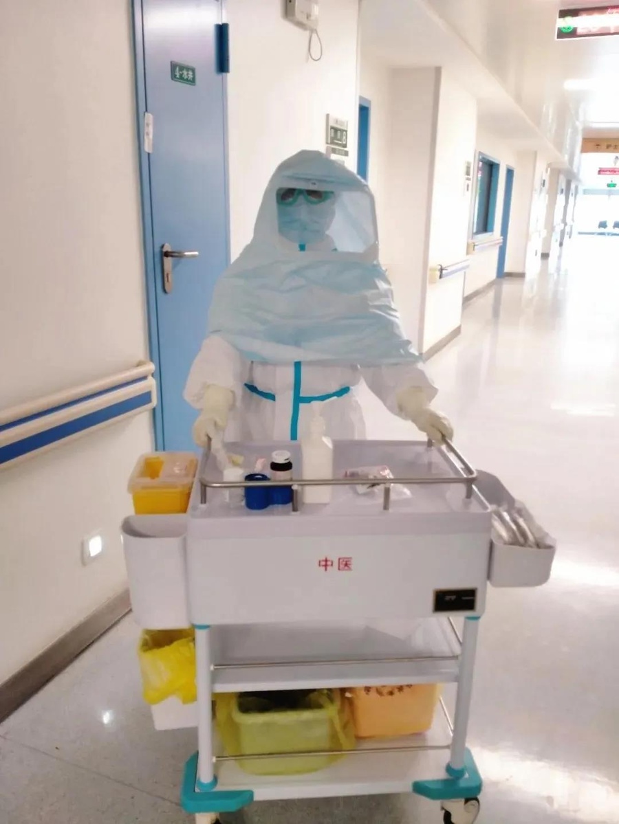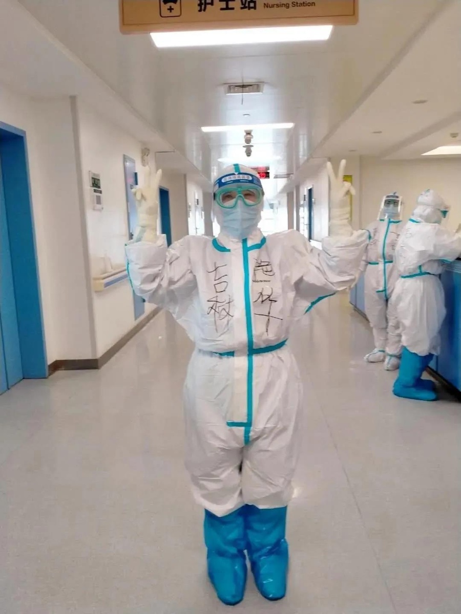 組里29床的阿姨也是我們組的重點(diǎn)病人,由于既往有腫瘤病史,阿姨患病以來(lái)特別焦慮,每次查房主訴都很多,我也都非常耐心的和她解釋病情,調(diào)整用藥。今天在我查房結(jié)束時(shí)她忽然拉住我說(shuō)“謝謝你”這聲謝謝讓我淚盈于睫。在忙碌和感動(dòng)中結(jié)束了今天的工作!脫掉防護(hù)服感覺(jué)很累,很冷,才發(fā)覺(jué)穿在防護(hù)服里面的衣服已經(jīng)濕透了。
