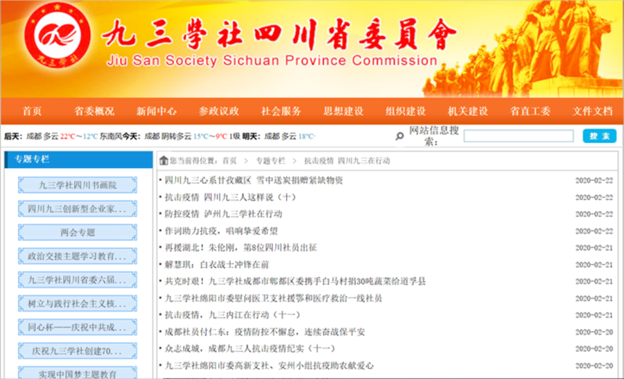 新冠肺炎疫情在武漢爆發(fā)以來,全國各地紛紛啟動應(yīng)急響應(yīng)。疫情急如星火,四川九三人不管身在何處,抗擊疫情責(zé)無旁貸,獻(xiàn)計(jì)出力刻不容緩!