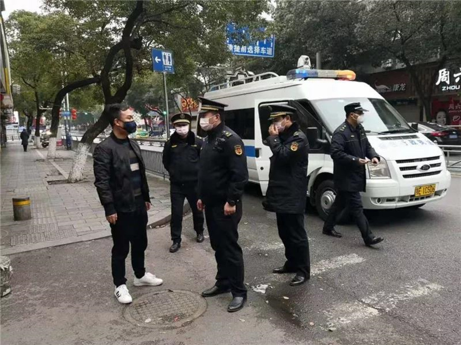 宜昌市九三學(xué)社社員韓波堅守在工作崗位上,開展城區(qū)街面巡查,春節(jié)期間為城區(qū)管理貢獻力量。