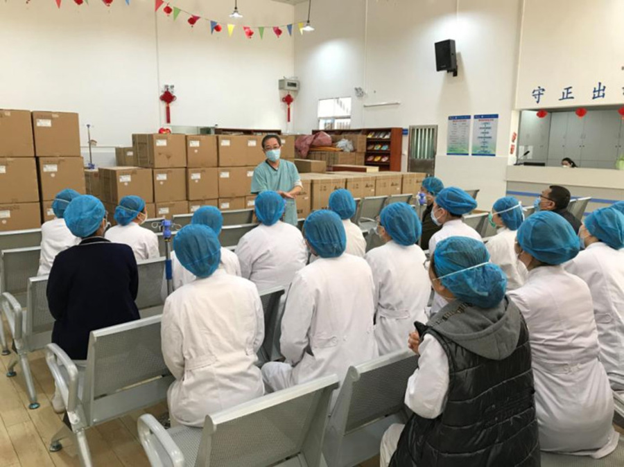 很快,在高斌與隊友們的共同努力下,天津醫(yī)療隊負責病區(qū)的感控措施有序展開。還沒有來得及偷得浮生半日閑,他又接到了新的任務——對武鋼二院負責的另一個病區(qū)的醫(yī)護人員及后勤維修、信息調試、廢物運輸?shù)鹊认嚓P人員近百人進行感控培訓。于是,新一輪的工作開始了……