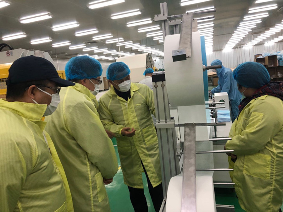 在上海即索實業(yè)有限公司,周鋒一行在口罩生產車間,聽取了社員、公司董事長王輝忠對公司轉產口罩的情況介紹。春節(jié)前,王輝忠就多方努力,克服各種困難,利用面膜車間及時轉產口罩,短短一個月時間捐贈口罩二十余萬個,供應區(qū)內各復工企業(yè)口罩約四十萬個。目前為了抗擊疫情,企業(yè)正在調試新的設備,增加日產量,以滿足疫情防控的需要。周鋒等對他的善舉表示衷心感謝。
