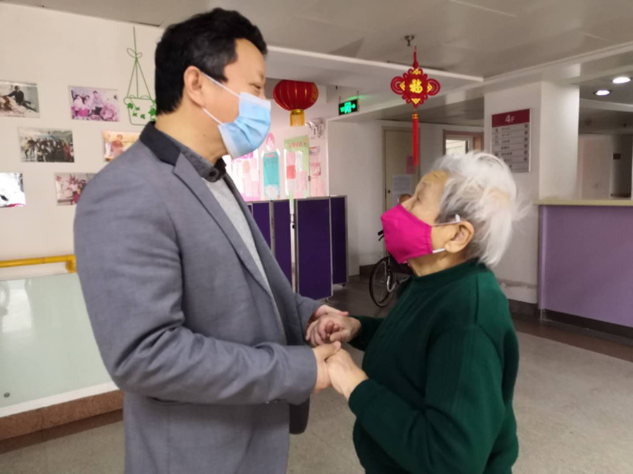 孫兆元用心用情關愛老人,體恤家屬。2月20日,養(yǎng)老院原計劃的一個傳統(tǒng)活動——老人生日會受疫情影響無法如期舉行。他便提前安排膳食科為過生日的老人精心準備了生日蛋糕 、生日套餐和壽面,并在當天親自為老人們一一送上生日祝福,用真情撫慰老人們的心靈。
