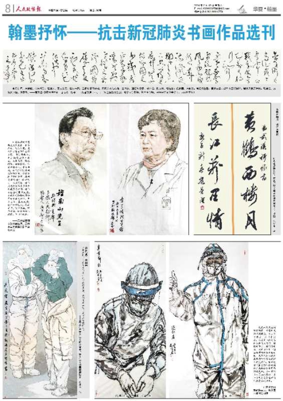 懷著從崇敬的心情與激情,九三學(xué)社安順市主委賀未泓創(chuàng)作了奮斗在抗疫一線的鐘南山院士、李蘭娟院士的肖像畫,發(fā)表于2020年2月15日《人民政協(xié)報》第八版“翰墨抒懷——抗擊新冠肺炎書畫作品選刊”。向他們表示崇高的敬禮!也為奮戰(zhàn)在一線的白衣天使、人民警察、部隊(duì)官兵、基層工作者們助力、加油!