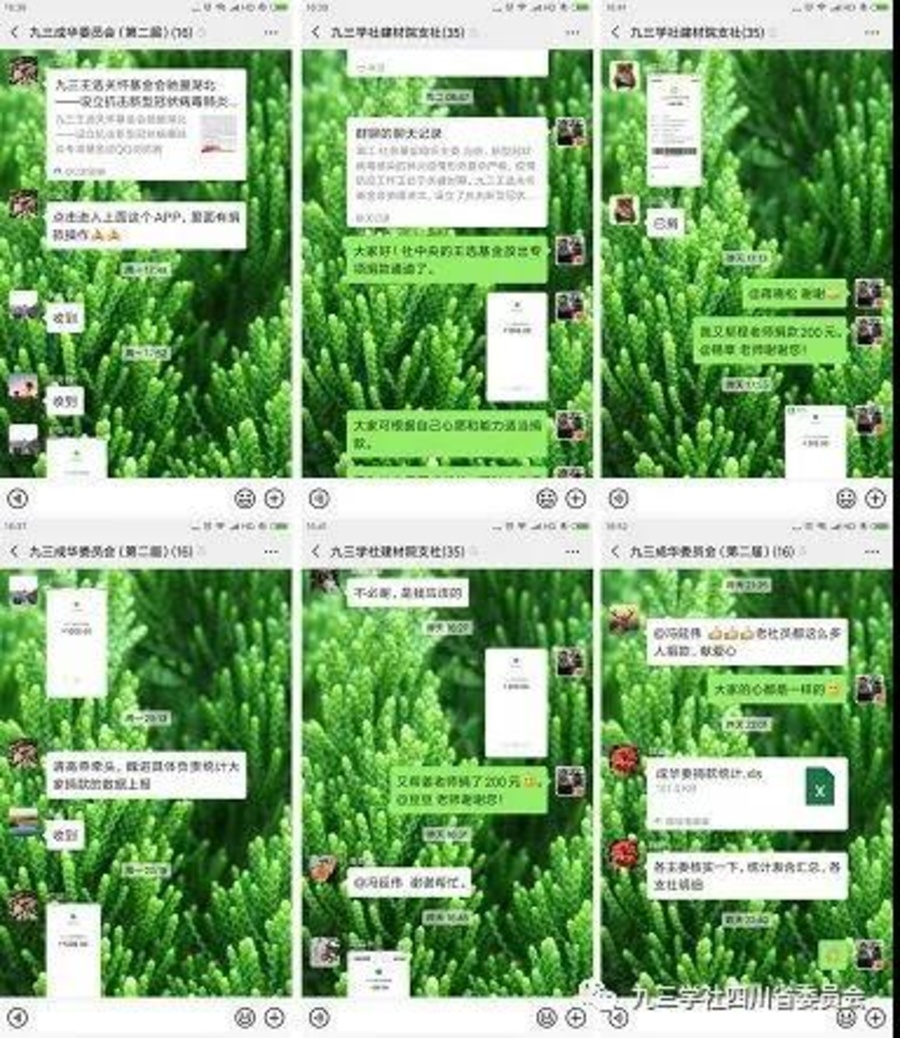 在九三學(xué)社宜賓市委微信群里,200元、400元……一張張截圖、一份份愛心源源不斷匯聚起來。