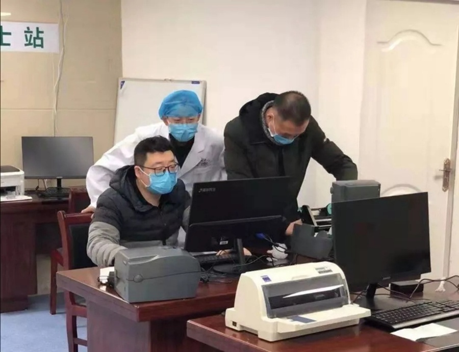 隨著疫情的快速發(fā)展,醫(yī)院新建增發(fā)熱門診和病房,為保證就診工作如期有效開展,劉洋和同事們必須在極短時(shí)間內(nèi),趕在發(fā)熱門診和發(fā)熱病房啟用前,先把計(jì)算機(jī)、打印機(jī)、無線數(shù)字傳呼等硬件,以及門診醫(yī)生工作站、住院醫(yī)生工作站、住院護(hù)士工作站、電子病歷等信息系統(tǒng)搭建起來,確保門診醫(yī)生站、住院醫(yī)生站和住院護(hù)士站能正常使用。劉洋及其團(tuán)隊(duì)連續(xù)幾天加班到凌晨三四點(diǎn),緊急安裝電腦100多臺(tái)、打印機(jī)160多臺(tái)、無線傳呼系統(tǒng)22套,為東津2號(hào)樓18個(gè)病區(qū)、前期6個(gè)發(fā)熱病房及三院區(qū)的發(fā)熱門診正常就診保駕護(hù)航。