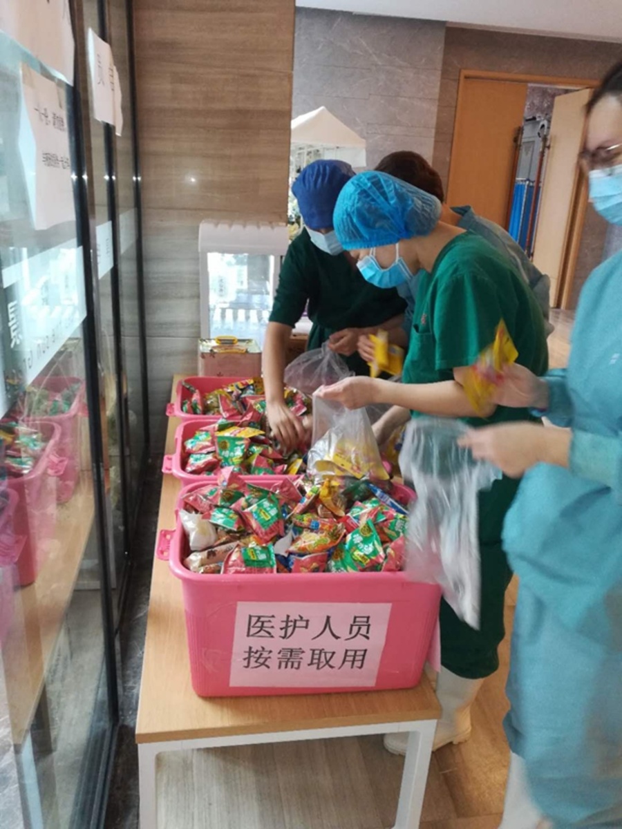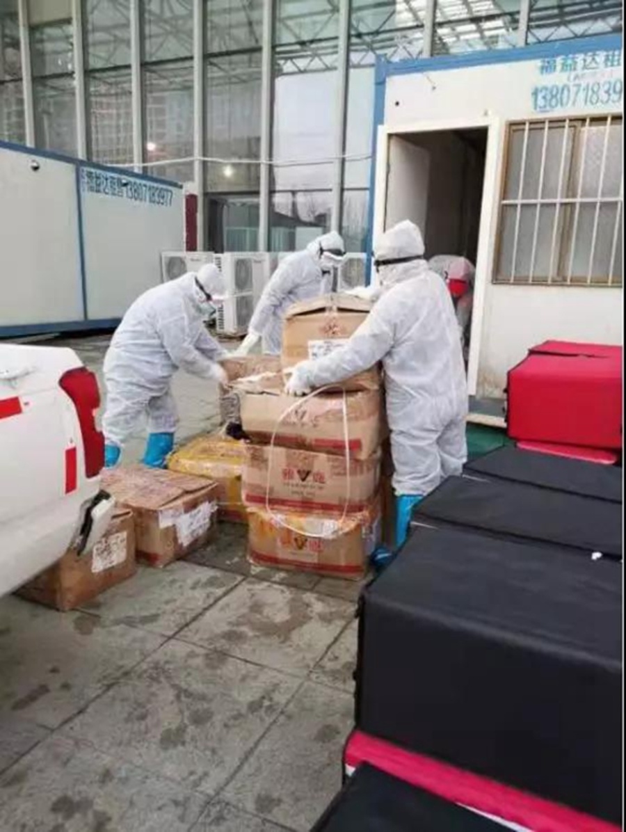 “一開始還有防護服,我們都是做好防護,把東西搬到方艙醫(yī)院的轉運區(qū),和病區(qū)就是一門之隔。”后來,防護服日益緊張,他們連轉運區(qū)也不能進了,只能把東西搬到轉運區(qū)門外,遠遠退開,再讓里面的工作人員出來拿。