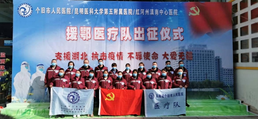 疫情當(dāng)前,八方馳援!2月11日,個(gè)舊市人民醫(yī)院赴湖北抗擊疫情醫(yī)療隊(duì)19名醫(yī)務(wù)人員集結(jié)完畢、踏上征途。