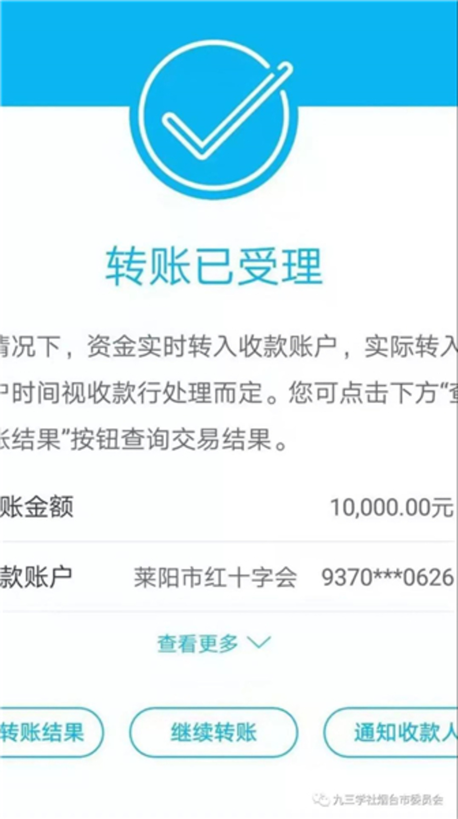 萊陽市支社副主委、煙臺安茂喜連升鞋業(yè)有限公司董事長萬同軍通過萊陽市紅十字會定向捐款1萬元。