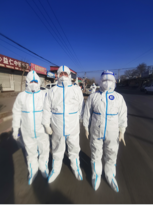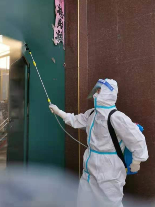 到達(dá)時(shí),全鎮(zhèn)的百姓已經(jīng)撤離,門(mén)上都貼了封條,整個(gè)村鎮(zhèn)毫無(wú)生氣。時(shí)間緊,任務(wù)重,在“讓當(dāng)?shù)卮迕襁^(guò)年都干凈回家”的號(hào)召聲中,他們當(dāng)天便立刻投入了工作。7天時(shí)間里,他們迎難而上,同時(shí)間賽跑、與疫情較量。早上天沒(méi)亮便整裝待發(fā),直到夜幕降臨才脫下一身的裝備,朝霞與星辰見(jiàn)證著他們的辛勞與汗水;50斤的器械和消毒劑肩上扛起,封閉的防護(hù)服包裹身體,后背的紅痕和護(hù)目鏡上的水蒸氣詮釋著他們的擔(dān)當(dāng)與奉獻(xiàn)。執(zhí)行任務(wù)時(shí),他們認(rèn)真嚴(yán)謹(jǐn),一絲不茍,確保消殺工作無(wú)死角、無(wú)漏洞,為當(dāng)?shù)卮迕衲馨踩珰w家過(guò)年建立起最堅(jiān)固的安全屏障。