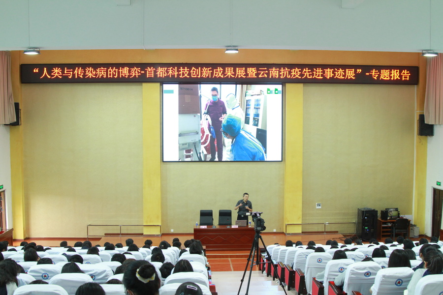 6月10日上午,麗江民族中專報(bào)告廳座無虛席,以“后疫情時(shí)代的思考”為主題,由云南省第二人民醫(yī)院呼吸與危重癥醫(yī)學(xué)科科室副主任,副主任醫(yī)師何建林任主講,他圍繞主題,從疫情爆發(fā)、醫(yī)護(hù)人員完美“逆行”、疫情防控、疫苗接種等方面,以自己的親歷親聞為同學(xué)們分享了一年多來的點(diǎn)滴,同時(shí)對相關(guān)知識作了科普。聆聽本場講座的近300名同學(xué)中,大部分人的專業(yè)與醫(yī)學(xué)、護(hù)理有關(guān)。聽了講座后,同學(xué)們不僅對專業(yè)方面提高了認(rèn)知,也對醫(yī)生這一職業(yè)產(chǎn)生了敬仰,從心里深深感受到醫(yī)務(wù)工作者的偉大,人類與病毒的博弈離不開“逆行者”,疫情到來時(shí),感謝白衣天使們的‘逆行’。何建林表示,本場講座的主要目的是希望通過分享一些“抗疫大潮”中的先進(jìn)事跡,讓同學(xué)們堅(jiān)定理想信念,繼承“逆行者”們的精神品質(zhì)。