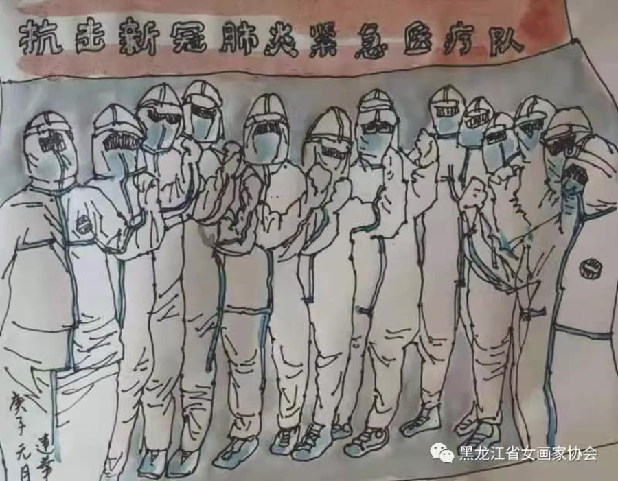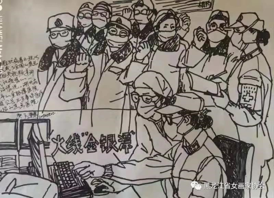 宮建華,九三學(xué)社哈爾濱師范大學(xué)委員會(huì)副主委,哈爾濱師范大學(xué)美術(shù)學(xué)院教授、博士生導(dǎo)師,中國(guó)女畫家協(xié)會(huì)常務(wù)理事,黑龍江省女畫家協(xié)會(huì)主席,黑龍江省美術(shù)家協(xié)會(huì)副主席。自新冠肺炎疫情發(fā)生以來,宮建華時(shí)刻關(guān)注疫情信息,她積極地參與愛心捐款活動(dòng),到目前為止已累計(jì)捐款9800元;同時(shí)用畫筆督促大眾樹立防范意識(shí)、強(qiáng)化科學(xué)防護(hù)。她創(chuàng)作的藝術(shù)作品飽含真情,為防控一線的“逆行者”們注入精神力量。