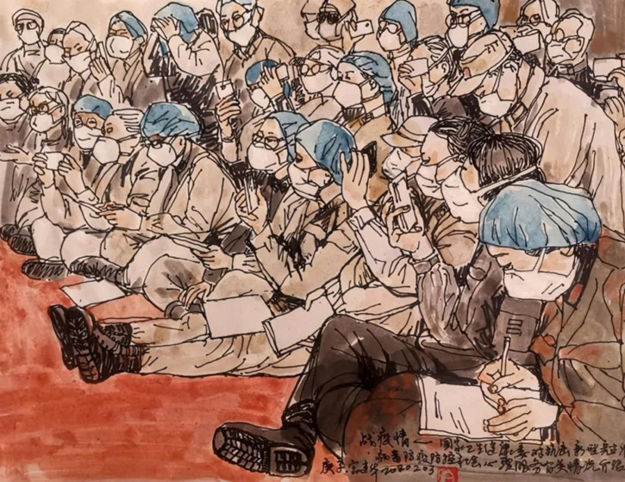 宮建華老師說:“面對(duì)這場(chǎng)疫情,每時(shí)每刻都被身在一線的醫(yī)護(hù)工作者和志愿者的獻(xiàn)身精神深深感動(dòng),他們不顧個(gè)人安危的身影深深印在我的腦海中。作為一名美術(shù)工作者,用手中的畫筆來表達(dá)此時(shí)心中對(duì)他們的敬佩是最佳的紀(jì)念方式。在抗疫攻堅(jiān)戰(zhàn)的關(guān)鍵時(shí)期,我們要堅(jiān)持同舟共濟(jì),堅(jiān)信武漢必勝,中國(guó)必勝!”