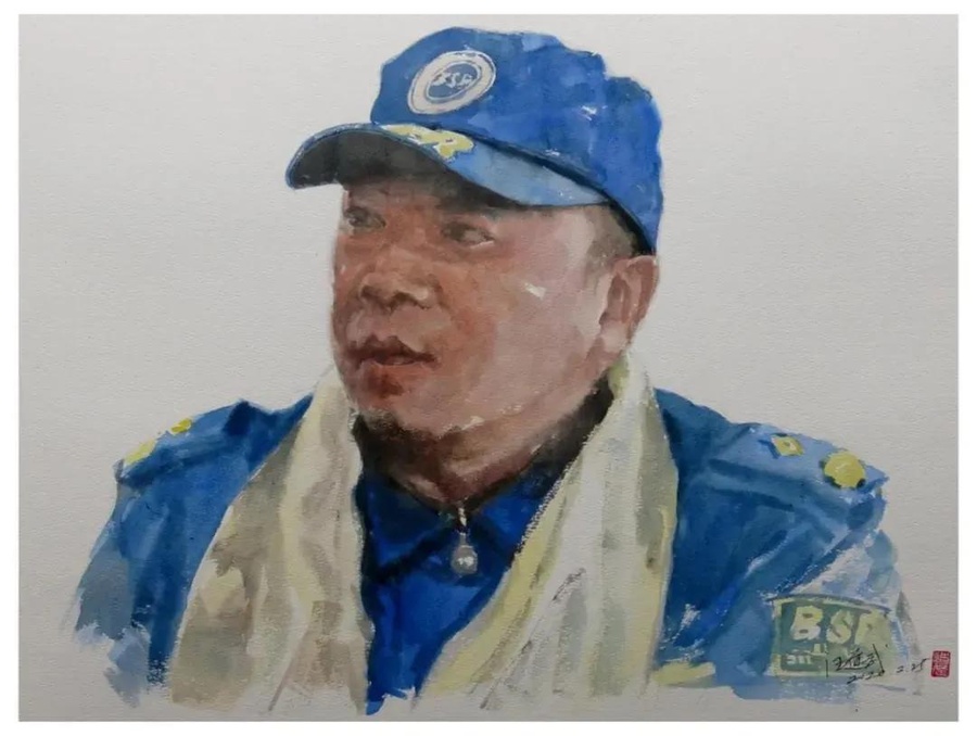 注:蘇州藍(lán)天救援隊許鵬,在前往湖北災(zāi)區(qū)運(yùn)送救援物資途中遭遇車禍不幸離世。作者將許鵬的光輝形象印記在了畫紙上,贈送給蘇州藍(lán)天救援隊。