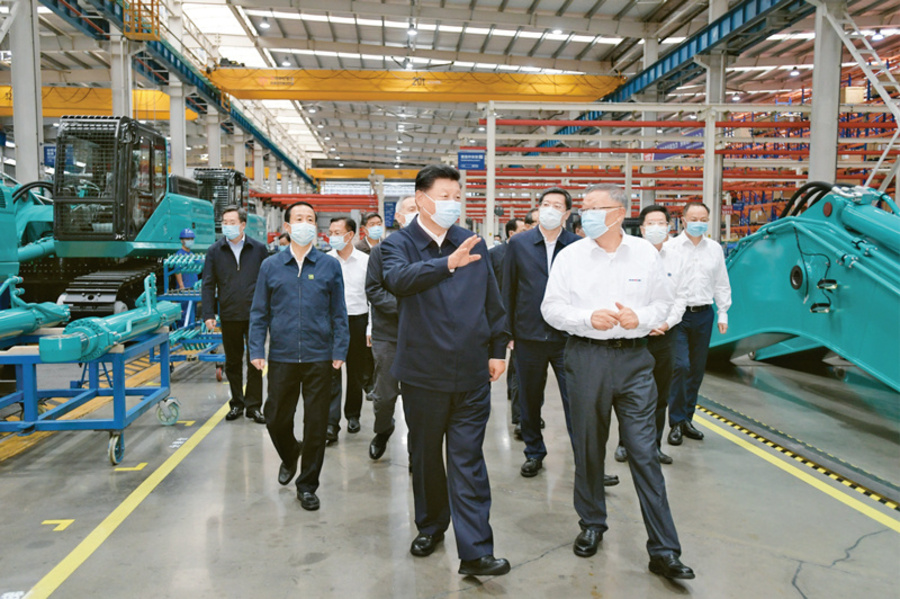2020年9月16日至18日,中共中央總書記、國(guó)家主席、中央軍委主席習(xí)近平在湖南考察。這是17日下午,習(xí)近平在長(zhǎng)沙市山河智能裝備股份有限公司生產(chǎn)車間,察看裝備制造流程,了解技術(shù)研發(fā)、生產(chǎn)制造情況。 新華社記者 李學(xué)仁/攝
