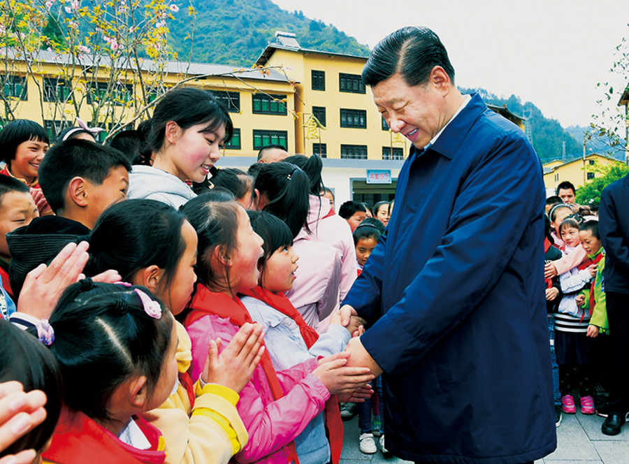 2019年4月15日至17日,中共中央總書記、國家主席、中央軍委主席習(xí)近平在重慶考察,并主持召開解決“兩不愁三保障”突出問題座談會(huì)。這是4月15日下午,習(xí)近平在石柱土家族自治縣中益鄉(xiāng)小學(xué)同學(xué)生們親切交談,詢問他們學(xué)習(xí)和生活情況。 新華社記者 謝環(huán)馳/攝