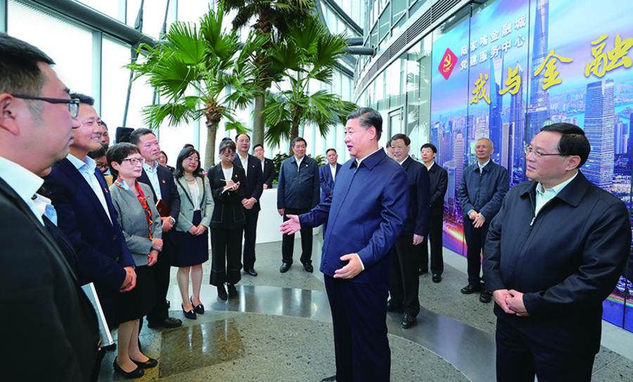 2018年11月6日至7日,中共中央總書(shū)記、國(guó)家主席、中央軍委主席習(xí)近平在上海考察。這是6日上午,習(xí)近平在上海中心大廈22層的陸家嘴金融城黨建服務(wù)中心,同正在聯(lián)合開(kāi)展主題黨日活動(dòng)的企業(yè)黨員親切交談。 新華社記者 謝環(huán)馳/攝
