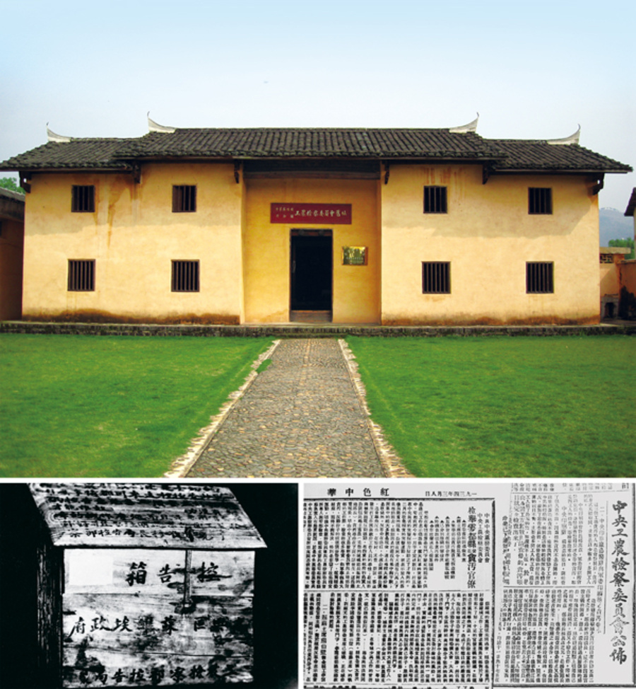 在中央蘇區(qū)、延安時(shí)期,我們黨探索了一套對(duì)蘇維埃政府、邊區(qū)政府和革命根據(jù)地人民政權(quán)組織及其工作人員的監(jiān)督辦法。 上圖為江西瑞金中華蘇維埃共和國(guó)工農(nóng)檢察委員會(huì)舊址;下左圖為當(dāng)年江西興國(guó)縣高興區(qū)蘇維埃政府工農(nóng)檢察部設(shè)置的控告箱;下右圖為《紅色中華》報(bào)關(guān)于中央印刷廠等單位貪污案查處結(jié)果和檢舉于都縣蘇維埃工作人員營(yíng)私貪污案的報(bào)道。 中共江西省贛州市委黨史辦供圖