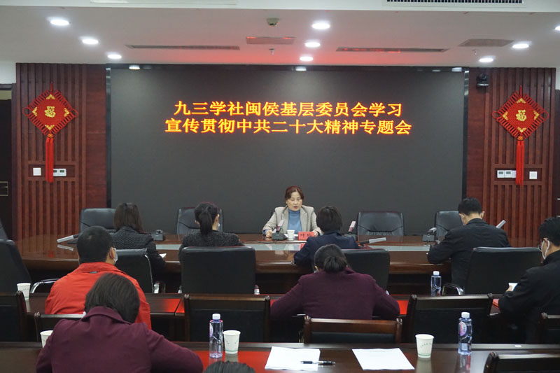12月1日,九三學社福建省委副主委、社福州市委主委、福州市醫(yī)保局局長葉玲赴九三學社閩侯基層委宣講中共二十大精神。社福州市委專職副主委羅楓,社市委委員、社閩侯基層委主委陳愛民及閩侯縣全體社員參加。