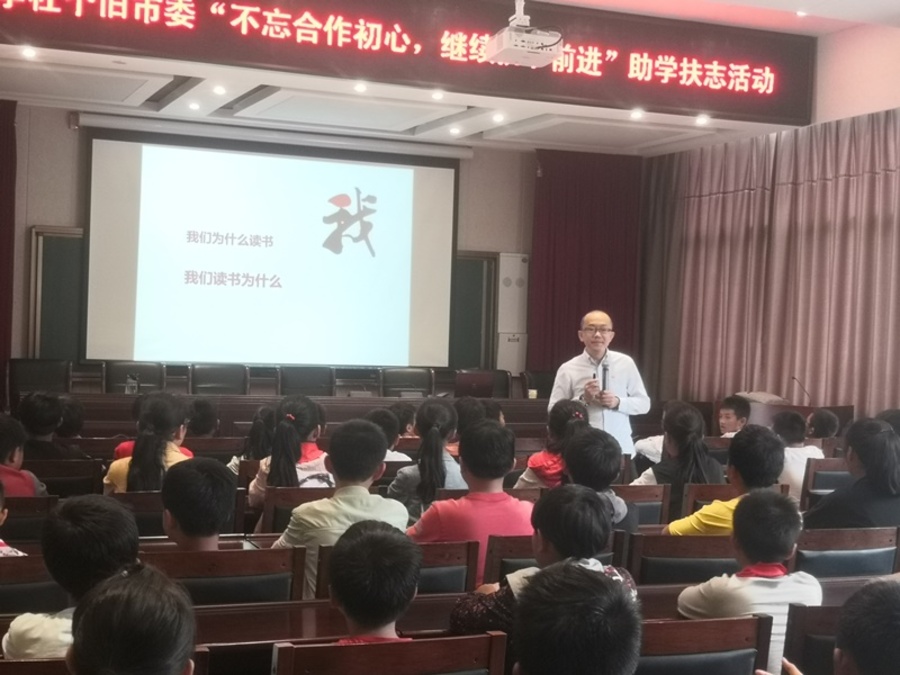 據(jù)悉,活動(dòng)邀請(qǐng)了紅河學(xué)院政治學(xué)與國(guó)際關(guān)系學(xué)院特聘講師、紅河州協(xié)同社會(huì)工作服務(wù)中心理事長(zhǎng)、心理咨詢師、九三學(xué)社社員陳杰老師現(xiàn)場(chǎng)授課,卡房中心小學(xué)近200名學(xué)生參加了此次助學(xué)扶志團(tuán)體心理輔導(dǎo)。授課以“認(rèn)識(shí)自己”為切入點(diǎn),結(jié)合“你為什么讀書,讀書為什么”“認(rèn)識(shí)人類進(jìn)步靠知識(shí)”“科技改變?nèi)祟?rdquo;等方面激勵(lì)學(xué)生們樹立遠(yuǎn)大志向,養(yǎng)成良好的行為習(xí)慣,通過自己的勤奮和不懈努力,實(shí)現(xiàn)自己的夢(mèng)想、成為國(guó)家的棟梁。