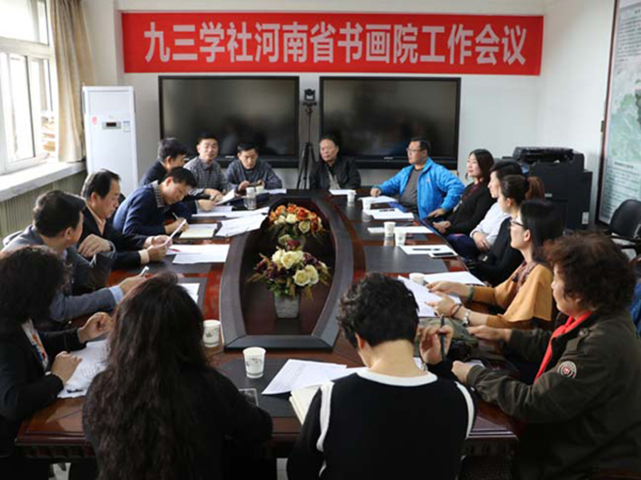 11月10日下午,九三學(xué)社河南省書畫院在鄭州召開第二次工作會議。會議宣布了書畫院人事任命;部署“九三先賢展”事宜;討論研究書畫院近期工作。省政協(xié)副主席、社省委主委張亞忠,社省委專職副主委陳志民出席會議。會議由社省委副巡視員宋育明主持。